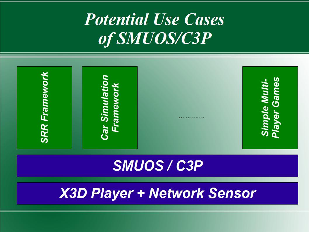 - SRR Framework = SMUOS Framework + Train Manager Extension (a set of X3D prototypes)